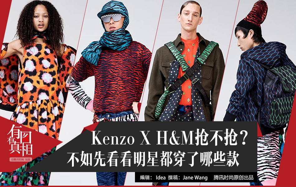 时尚达人们盼星星盼月亮可算是把今年H&M的合作款盼来了!早在今年年中,H&M就已经公布了今年的合作对象是街头潮牌kenzo,不少人就开始期盼用H&M的价格入手一件虎头卫衣。但是,不好意思,并没有…不仅没有翘首以盼的虎头卫衣,这一季合作款还破天际的花出了新高度,从虎皮纹到豹纹都大胆的运用了各种跳跃的色彩,包括男装亦是如此。其实kenzo秀场的画风本来就是酱紫的啊!那么如此不好穿搭的合作款我们当然还是要跟着明星买买买了。