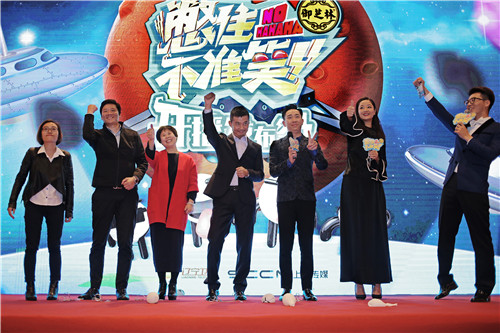 发布会现场众笑咖神还原emoji表情包,戏中的两个死对头“洪帮成员” 包贝尔、贾玲 和 “皇华驿成员” 林雪、文松,以及杨皓宇和包文婧分别组成三个战队,尽情上演“表情包大战”,贾玲“吐舌卖萌”,包贝尔“经典呵呵”表情重现,精彩连连,经典又洗脑,让人不禁想收集齐“欢喜”专属表情包。